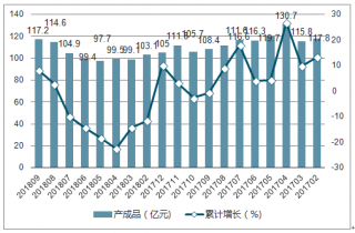 2017-2018年中國石油和天然氣開采產成品情況走勢