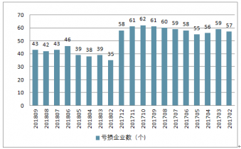 2017-2018年中國石油和天然氣開采虧損企業(yè)數(shù)量走勢
