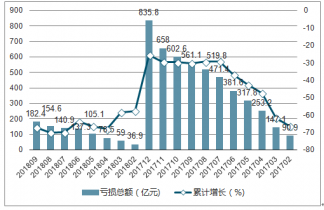 2017-2018年中國石油和天然氣開采虧損企業(yè)虧損總額走勢