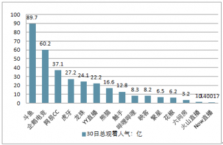 2018.7.22-2018.8.19直播平臺開播數(shù)30日總觀看人氣排名 Top 10