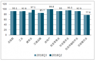 八個分行業(yè)指數(shù)均位于景氣臨界值100以下。