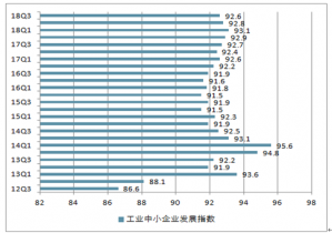 據(jù)中國中小企業(yè)協(xié)會發(fā)布的,2018年三季度中國中小企業(yè)發(fā)展指數(shù)(SMEDI)為93.0,連續(xù)兩個季度微降0.1點。