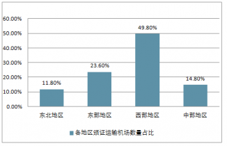 2017年各地區(qū)頒證運(yùn)輸機(jī)場(chǎng)數(shù)量占比