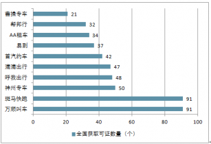 主要網(wǎng)約車平臺在全國獲得許可證數(shù)量分析