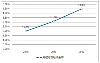 2015-2017年中國集成灶市場(chǎng)滲透率走勢(shì)