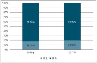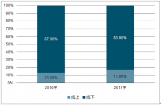 2016-2017年中國集成灶線上、線下銷售額占比