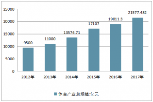 2012-2017年中國體育產(chǎn)業(yè)總規(guī)模走勢