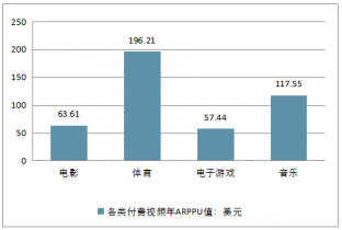2017年各類付費(fèi)視頻年ARPPU值情況
