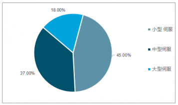在伺服系統(tǒng)產(chǎn)品市場份額情況中,小型伺服占比為45%,中型伺服為37%,大型伺服為18%。
