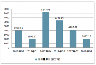 2017-2018中國初級(jí)塑料及合成樹脂各季度銷量