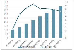 2018年2-9月中合成橡膠各月累計產量及同比增長走勢