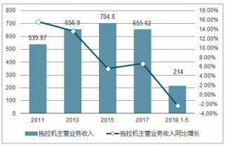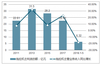 2010-2018年1-5月拖拉機主營業(yè)務收入同比增長走勢