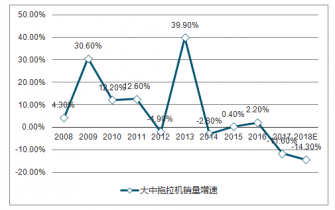 2007-2018年中國(guó)大中拖拉機(jī)銷(xiāo)量增速情況