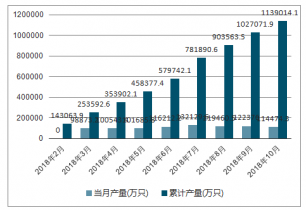 2018年2-10月中國鋰離子電池各月當(dāng)月產(chǎn)量及累計(jì)產(chǎn)量走勢