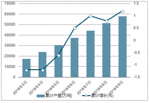 2018年2-9月中國生鐵各月累計產(chǎn)量及同比增長走勢