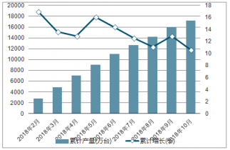 2018年2-10月中國房間空氣調(diào)節(jié)器各月累計(jì)產(chǎn)量及同比增長走勢(shì)