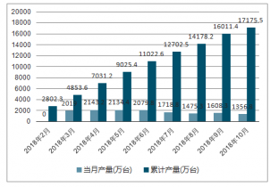 2018年2-10月中國(guó)房間空氣調(diào)節(jié)器各月當(dāng)月產(chǎn)量及累計(jì)產(chǎn)量走勢(shì)