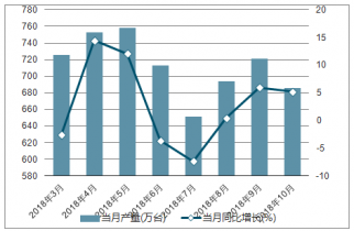 2018年10月中國(guó)家用電冰箱(家用冷凍冷藏箱)產(chǎn)量為685.4萬(wàn)臺(tái),同比增長(zhǎng)5.2%;2018年1-10月止累計(jì)中國(guó)家用電冰箱(家用冷凍冷藏箱)產(chǎn)量為6687.7萬(wàn)臺(tái),同比增長(zhǎng)2.2%。