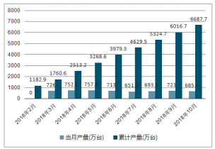 2018年10月中國(guó)家用電冰箱(家用冷凍冷藏箱)產(chǎn)量為685.4萬臺(tái),同比增長(zhǎng)5.2%;2018年1-10月止累計(jì)中國(guó)家用電冰箱(家用冷凍冷藏箱)產(chǎn)量為6687.7萬臺(tái),同比增長(zhǎng)2.2%。