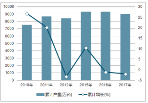 2010-2018年中國(guó)家用電冰箱(家用冷凍冷藏箱)產(chǎn)量及同比增長(zhǎng)走勢(shì)