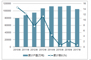 圖表:2015-2018年全國成品鋼材(扣除重復(fù)材后的估算量)累計(jì)產(chǎn)量及同比增長率