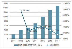 2011-2018年中國旅游業(yè)實(shí)際完成投資快速增長(億元, %)
