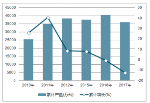2010-2018年中國電子計算機整機產(chǎn)量及同比增長走勢