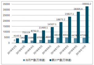 2018年10月中國移動通信基站設備產量達到4726.8萬信道,同比增長145.8%。2018年1-10月中國移動通信基站設備產量為33032.2信道,累計增長41.8%。