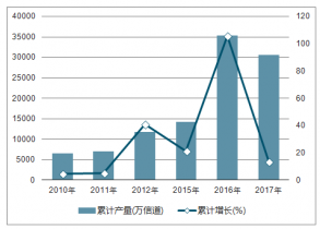 2010-2018年中國移動通信基站設備產量及同比增長走勢
