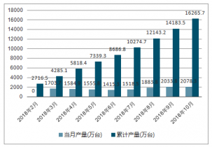 2018年2-10月中國彩色電視機(jī)各月當(dāng)月產(chǎn)量及累計(jì)產(chǎn)量走勢