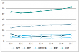 圖表:2012-2018年中國冰箱行業(yè)供給集中度