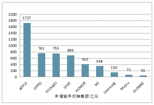在銷售額方面,Apple排名第.一,2018年上半年銷售額為1727億元;OPPO排名第二,2018年上半年銷售額為761億元;華為排名第三,銷售額為755億元。其后分別為vivo、榮耀、小米、三星、魅族以及金立。