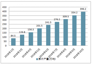 2018年2-10月中國鉛各月累計(jì)產(chǎn)量走勢(shì)