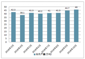 2018年2-10月中國鉛各月當(dāng)月產(chǎn)量走勢(shì)