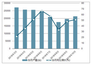 2018年2-10月中國挖掘機各月當(dāng)月產(chǎn)量及同比增長走勢