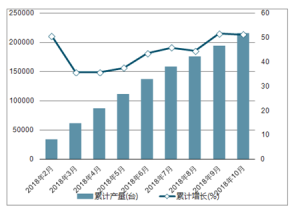 2018年2-10月中國挖掘機各月累計產(chǎn)量及同比增長走勢
