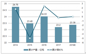 2014-2018水泥產(chǎn)量情況及增速