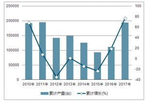 2010-2018年中國水泥專用設(shè)備產(chǎn)量及同比增長走勢
