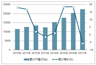 2010-2018年中國電工儀器儀表產(chǎn)量及同比增長走勢