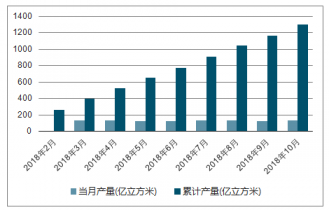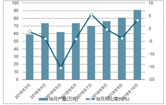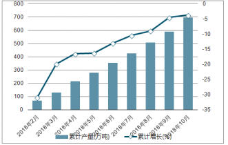 2018年2-10月中國液化天然氣各月當(dāng)月產(chǎn)量及同比增長走勢