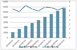 2018年2-10月中國(guó)汽油各月累計(jì)產(chǎn)量及同比增長(zhǎng)走勢(shì)