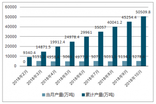 2018年3-10月中國原油加工及石油制品各月當(dāng)月產(chǎn)量及累計(jì)產(chǎn)量走勢