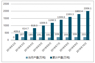 2018年3-10月中國燃料油各月當月產量及累計產量走勢