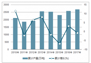 2010-2018年中國燃料油產量及同比增長走勢