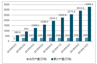 2018年3-10月中國液化石油氣各月當(dāng)月產(chǎn)量及累計產(chǎn)量走勢