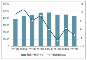 2010-2018年中國焦炭產(chǎn)量及同比增長走勢