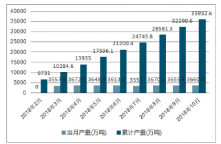2018年3-10月中國焦炭各月當(dāng)月產(chǎn)量及累計產(chǎn)量走勢