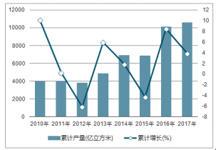 2010-2018年中國煤氣產(chǎn)量及同比增長走勢
