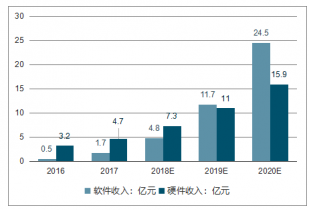2016-2020年中國虛擬現(xiàn)實市場軟硬件收入情況