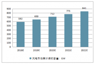 2018-2022年全球風電市場累計裝機容量預測